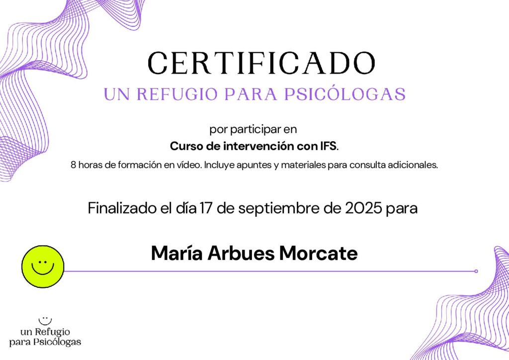 Titulaciones y certificados de María Arbues Psicóloga
